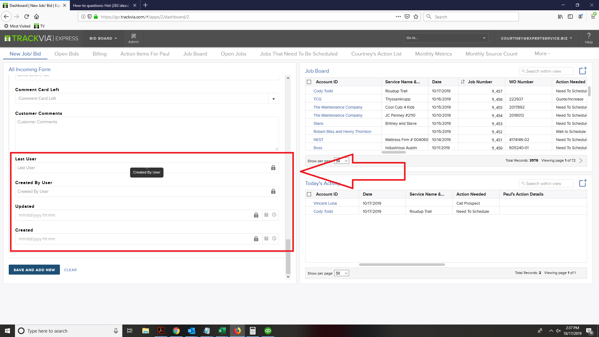 Thank you for reaching out with your question. The reason why you are seeing the "Created by" field on this form is because this is a default form, where all of the fields are displayed. You have the ability to create custom forms in TrackVia, where you can specify which fields you want to display, the order of the fields, assign different names to your fields, as well as format your custom forms with colors.