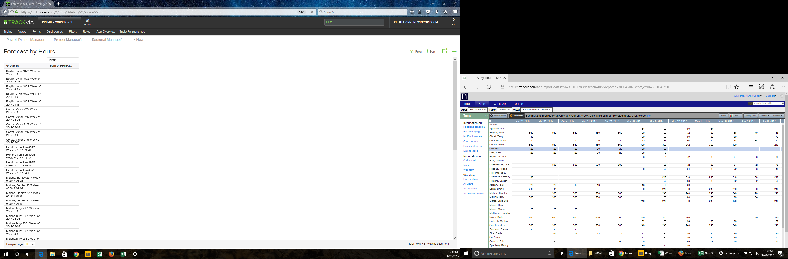 I am trying to replicate a view from the old version to the newest version of Trackvia. I am not having much success. Attached is a photo old vs new. Old version is shown on the right. Old version allows me to see when weeks are not populated shows availability. ANy ideas how to set up to show in landscape form?